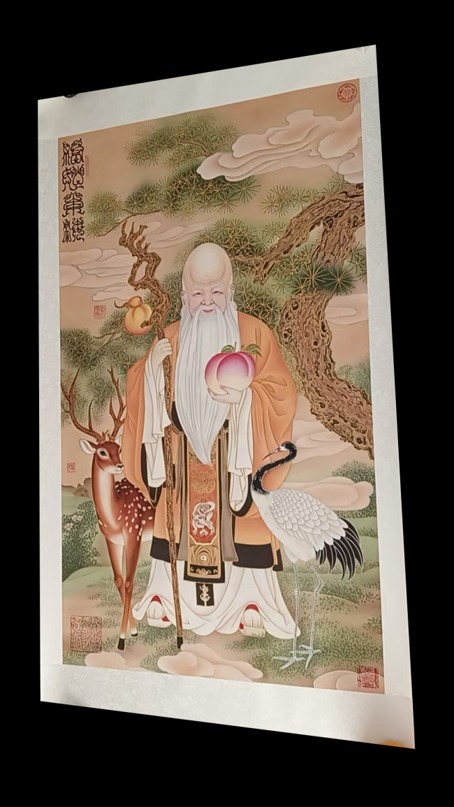 8.8 平尺宏幅巨制 重彩工笔绘就万福吉境 本作《福如东海》为8.8 平尺大尺幅臻品,采用顶级重彩工笔技法悉心创作,笔墨精细入微、设色浓丽雍容,画面汇聚经典福寿祥瑞元素,构图饱满大气、气韵祥和雅致。作品以 “福如东海” 为核心吉意,寓意福运绵长不绝、家宅兴旺昌隆、福寿康宁永续,是传统吉祥文化与书画艺术的完美融合,无论是厅堂陈设彰显门第气度,还是作为家族信物传递美好祝福,都堪称上上之选。